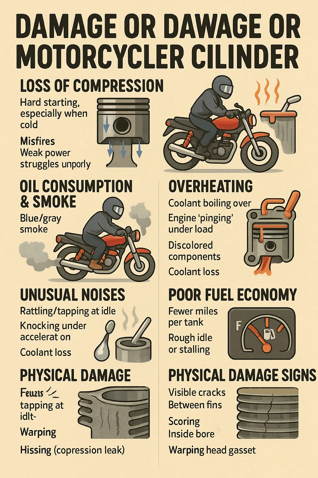 Zde je to, co se stane, když a motocyklový válec je poškozená nebo opotřebovaná, praktické vysvětlení: